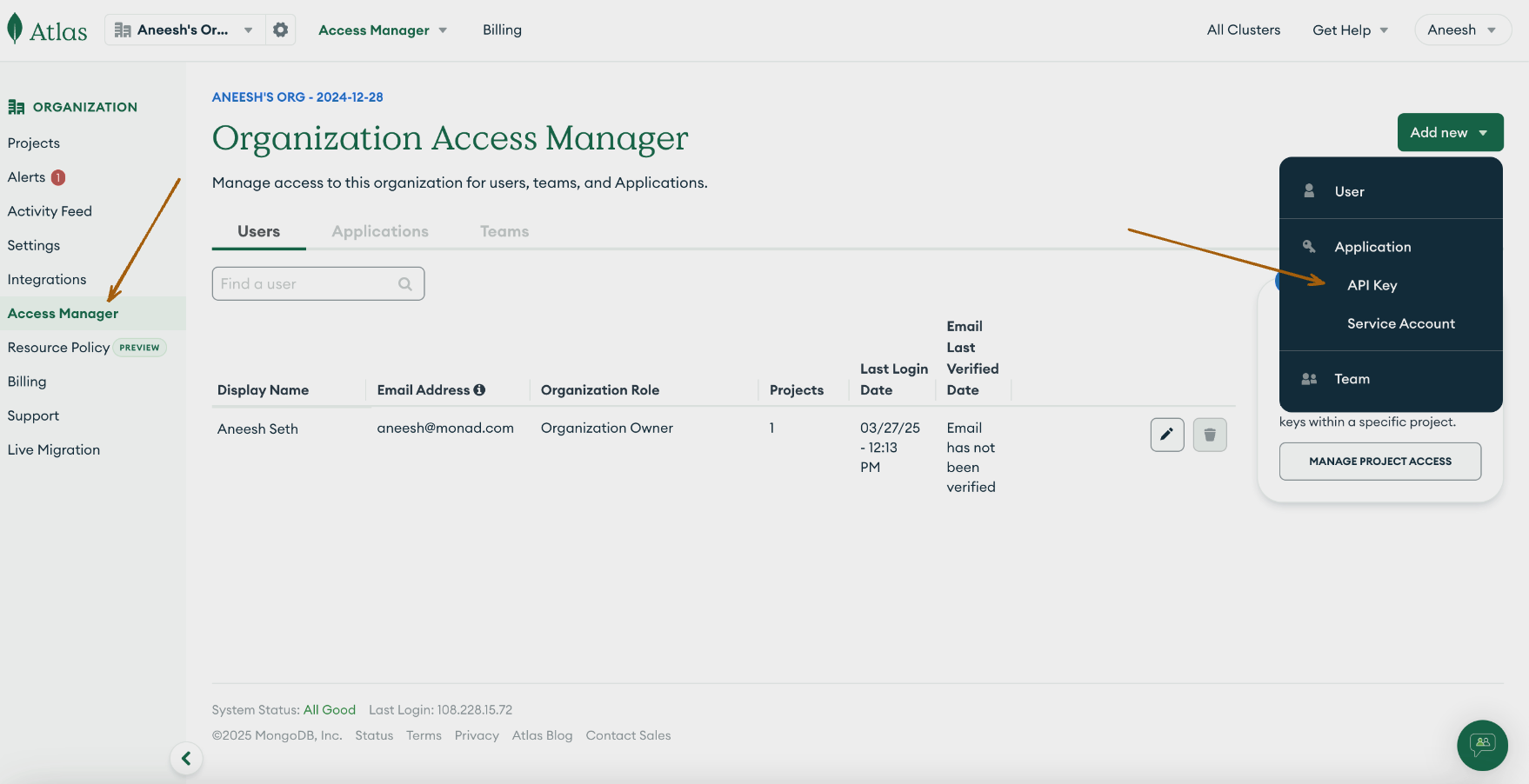 - https://www.mongodb.com/docs/atlas/configure-api-access/#std-label-atlas-admin-api-access