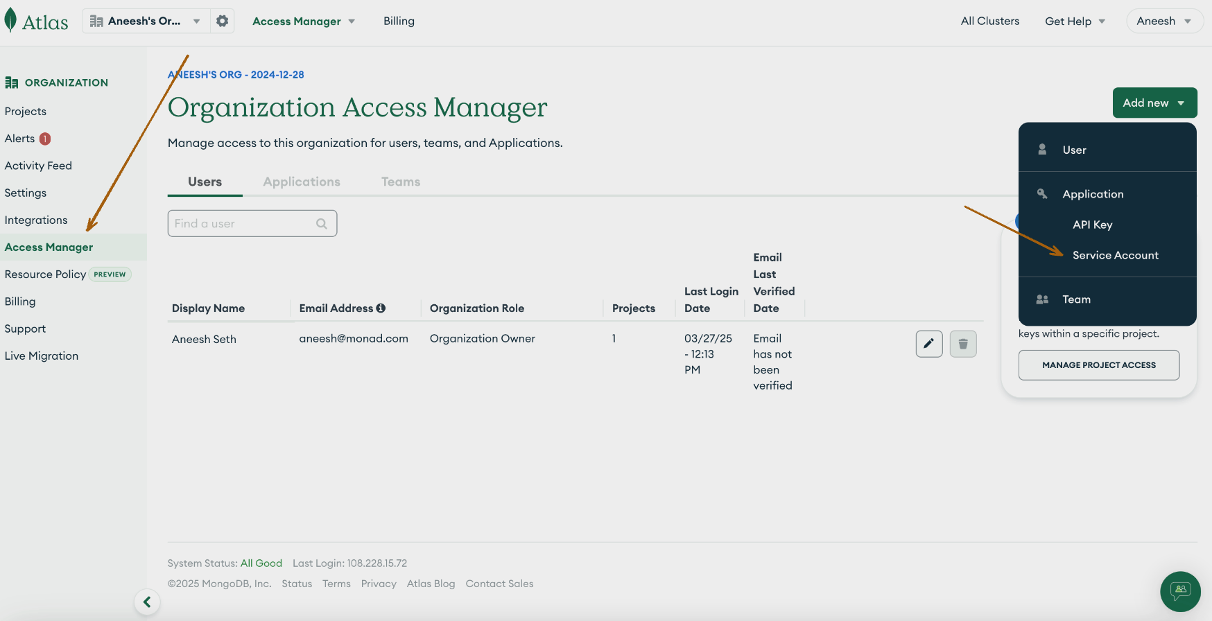 Before you connect Monad to MongoDB, you have to pick your authentication method: Service Accounts (Preview feature in MongoDB) or API Keys — Read More.