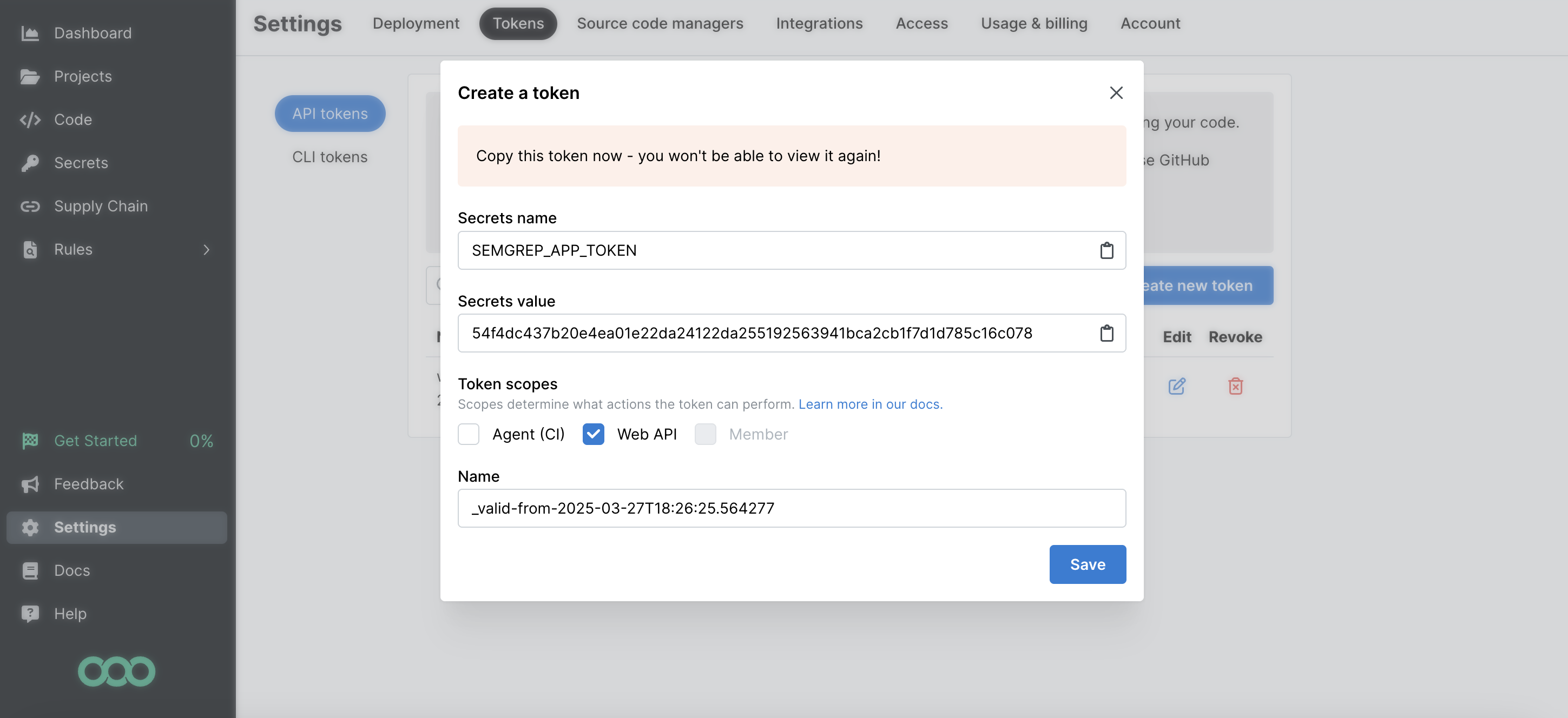 - Before you connect Monad to Semgrep, you need an API token. API tokens are scoped to include all code findings from a specific account in Semgrep.
