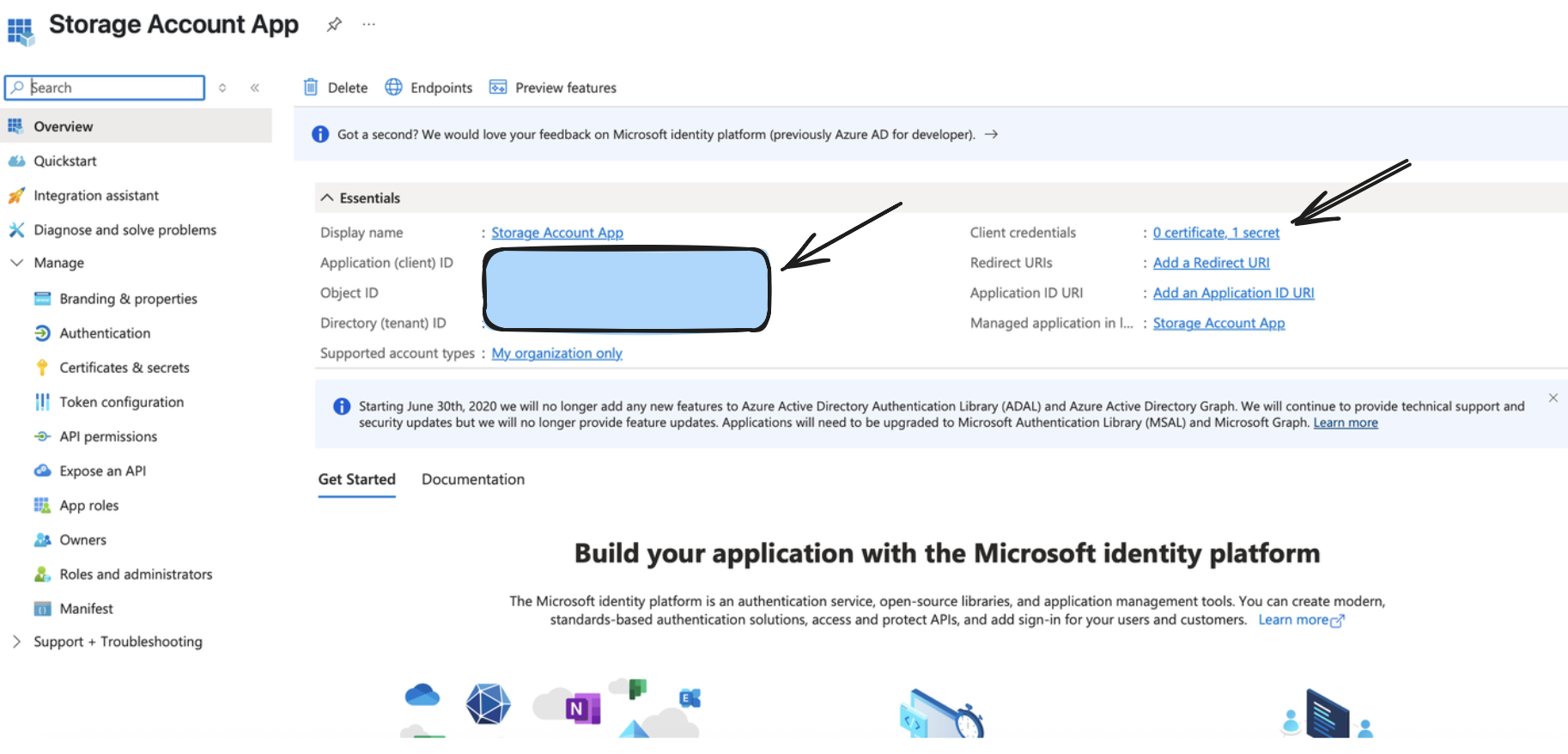 From the above step, you would receive a valid Application (Client) ID, Directory (Tenant ID), and a Client Secret Value, which would be used as a part of setting up the output connector.