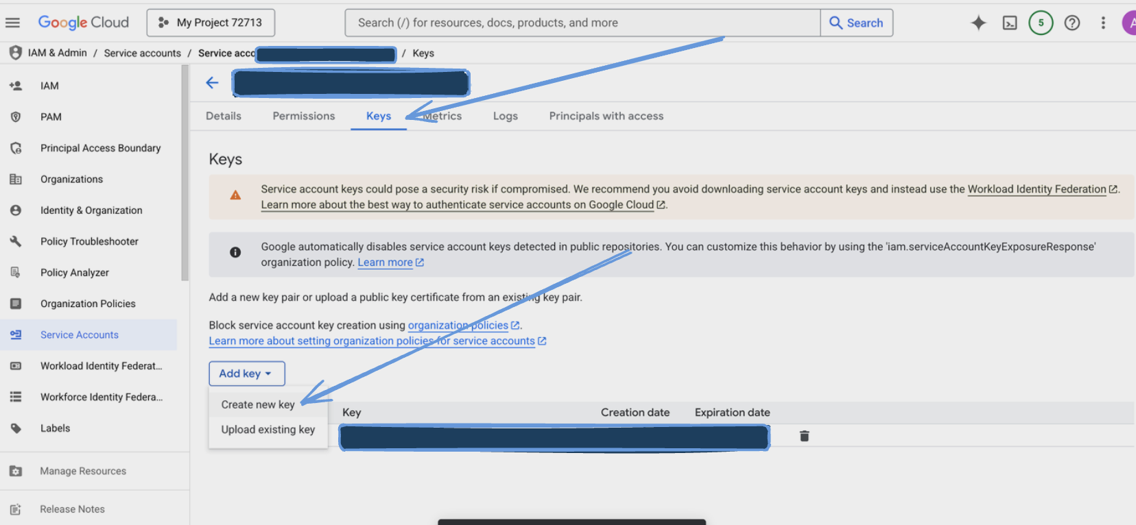 - Save the downloaded JSON key file securely.