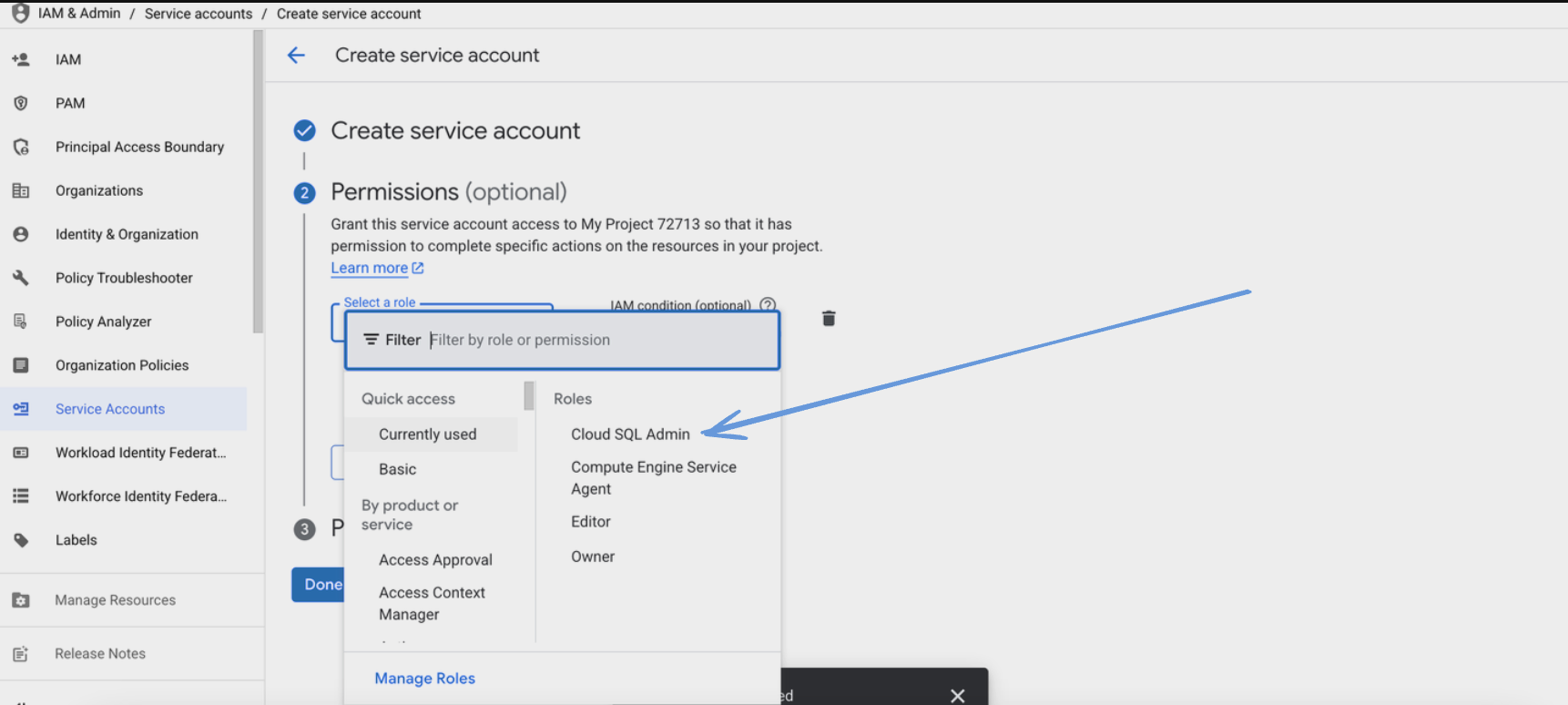 - Cloud SQL Client role