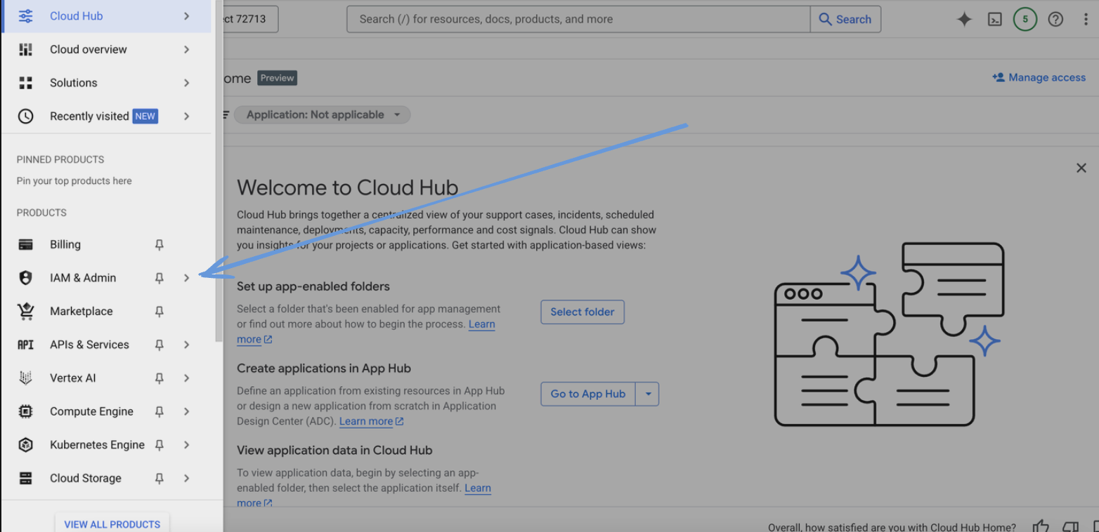 - Navigate to "IAM & Admin" > "Service Accounts".
